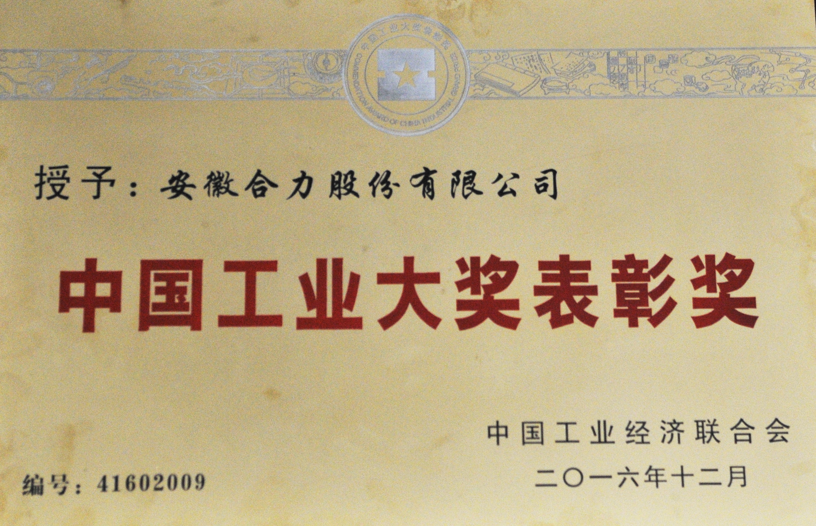 2016 安徽尊龙凯时股份有限公司中国工业大奖表扬奖