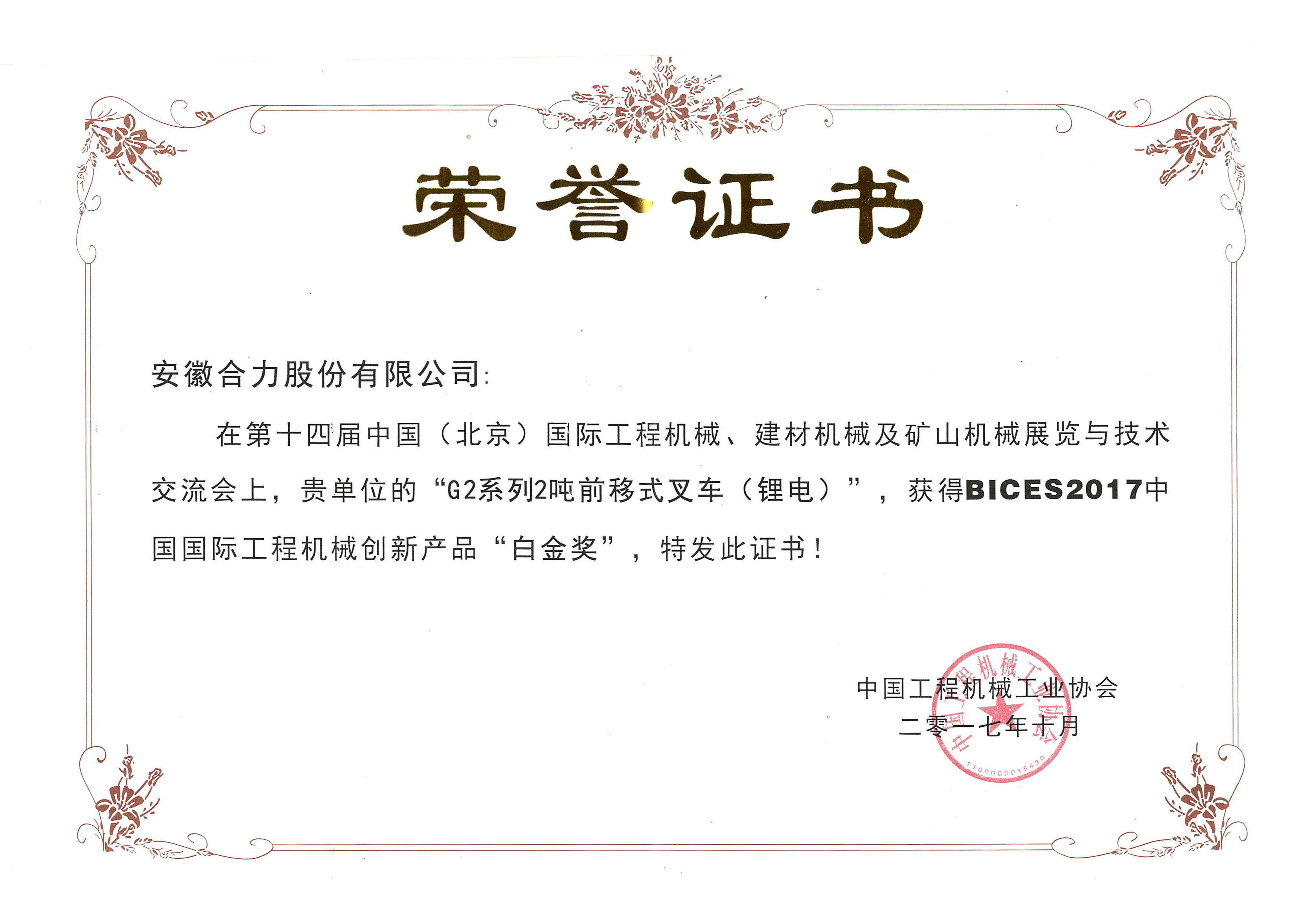 2017 中国国际机械白金奖G2-2吨前移式锂电