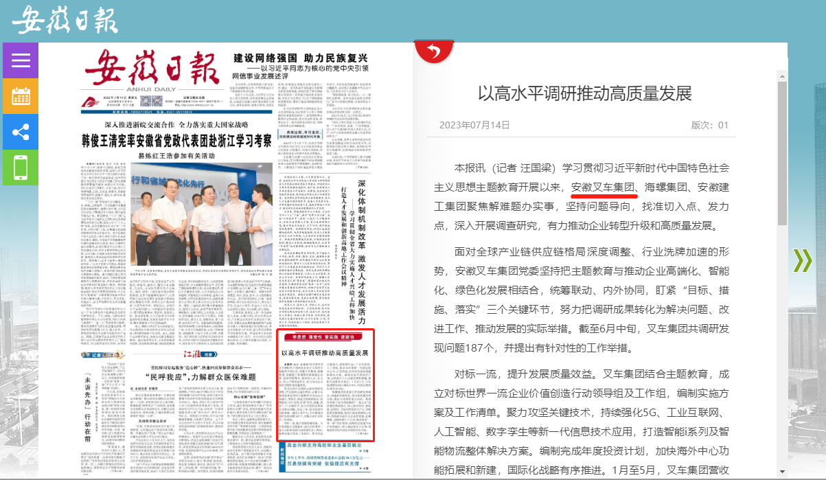 7月14日,《安徽日报》在头版中就安徽尊龙凯时以高水平调研推动高质量生长情形举行了报道。报道中体现,学习贯彻习近平新时代中国特色社会主义头脑主题教育开展以来,安徽尊龙凯时聚焦解难题办实事,坚持问题导向,找准切入点、发力点,深入开展视察研究,有力...